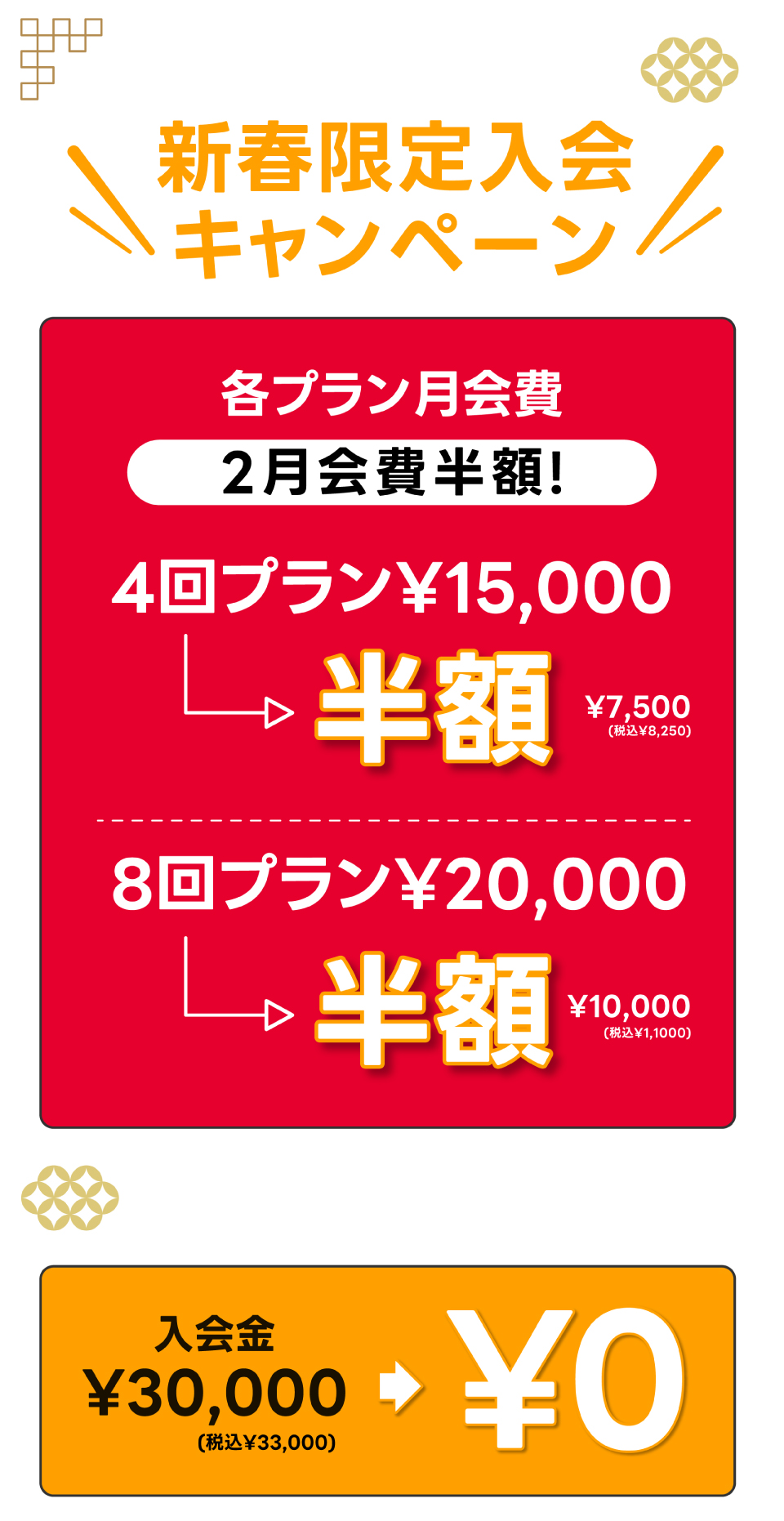 ✅ 4回プラン¥15,000 → 2月の月会費|半額(税込¥¥8,250)