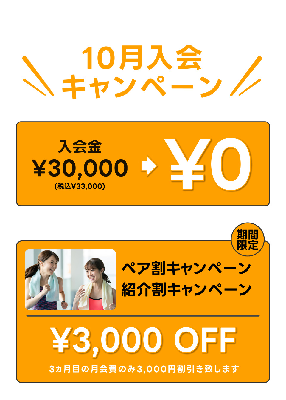 🔶10月限定 入会特典(通常入会金 ¥33,000 → ¥0)