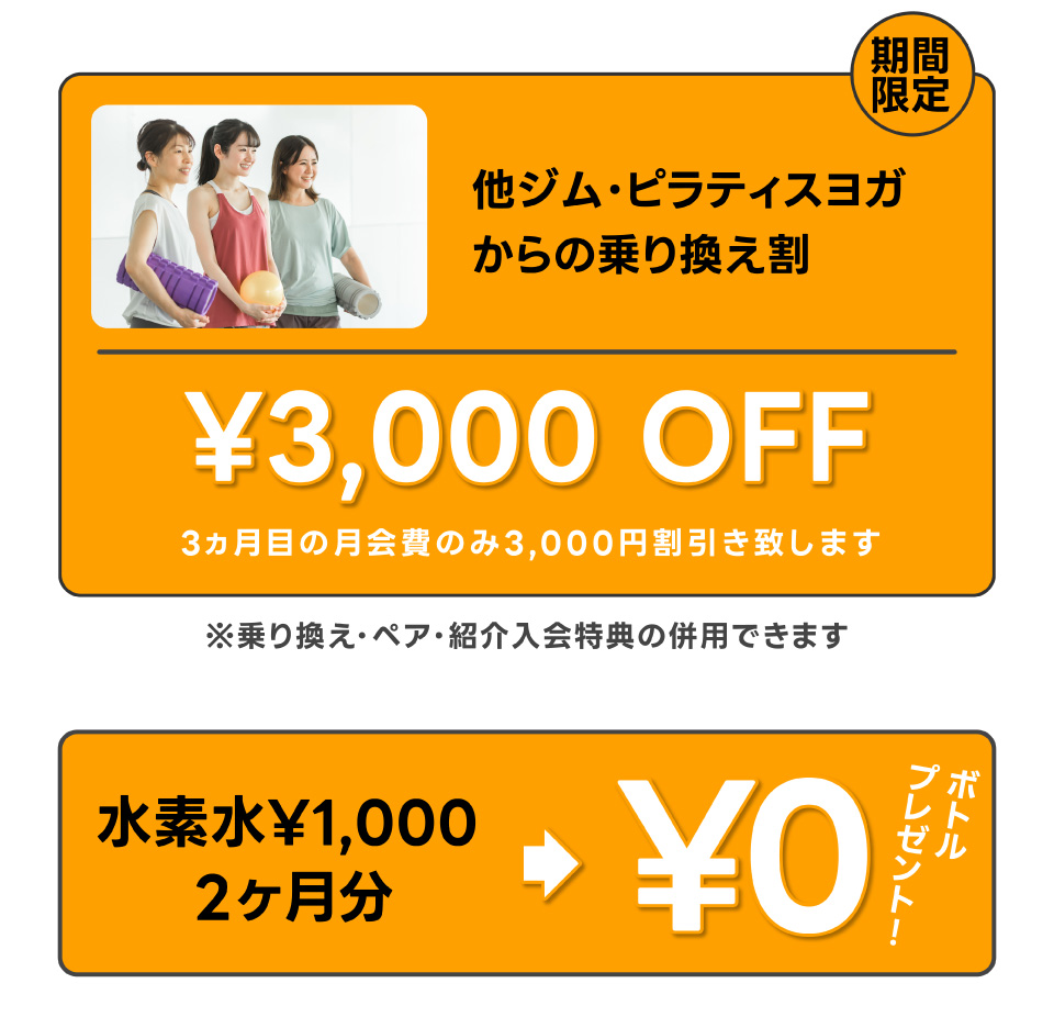 ※乗り換え・ペア・紹介入会特典の併用はできませんのでご了承ください。
