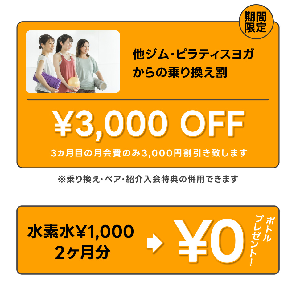 ※乗り換え・ペア・紹介入会特典の併用はできませんのでご了承ください。