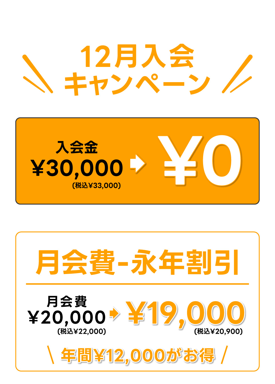 ・乗り換え/紹介/ペア入会で 月会費3,000円OFF(3ヶ月目に適用)